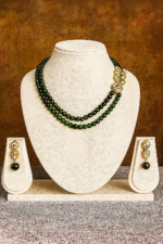 Product Description : This sophisticated jewellery set is a true statement of elegance and luxury. Necklace: A double-layered design featuring deep green polished beads that exude richness and grace.