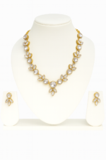 Product Description : This elegant jewellery set features a luxurious necklace and matching earrings designed to enhance your timeless beauty. Necklace Details: A beautifully crafted design with round-cut clear stones